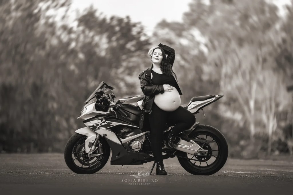 I typically don’t post black and white versions of my portraits. However, some of the images from this motorcycle maternity session were begging for that dramatic contrast.